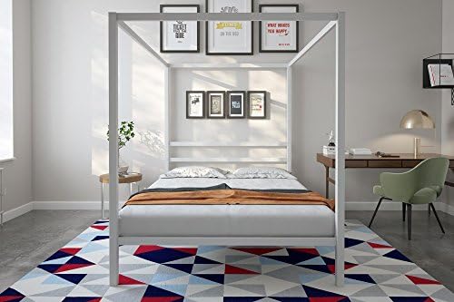 Get it as soon as mon, jun 14. Welcome to dorel home products (dhp), north america's leading supplier and importer of stylish furniture such as futons, beds, mattresses, and accent furniture. Buy dhp soho canopy bed, white, queen: The emerson is beautifully crafted with scrollwork detailing on the canopy beds four posts, headboard and footboard to give it the delicate jenny lind style. It includes secured metal slats and metal side rails for additional support